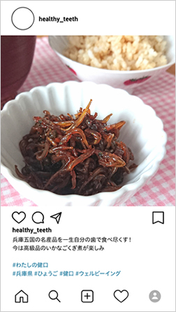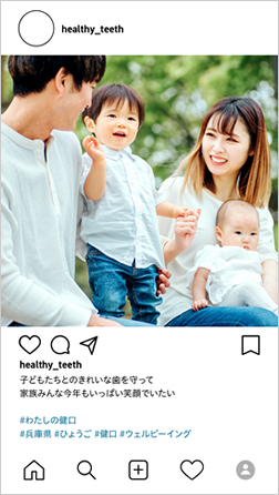② 「#わたしの健口」をつけて、写真+キャプション(投稿文)で「健康な歯と口で今年やりたいこと」を投稿